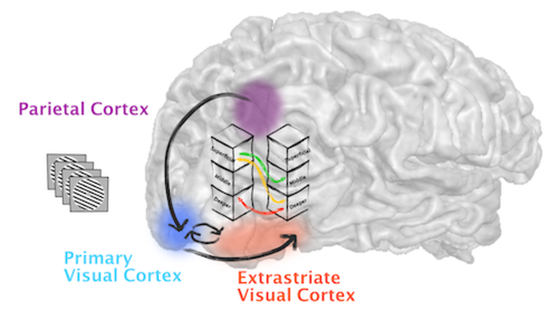 Exciting work in the lab using Laminar fMRI reveals that adaptive processing involves recurrent processing within visual cortex and top-down influences from posterior parietal cortex via feedback.
